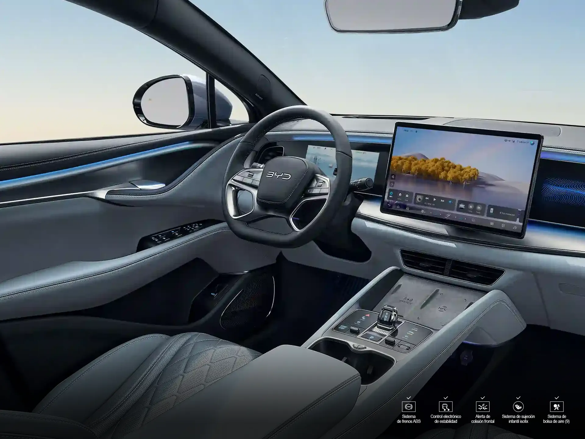Con Apple CarPlay y Android Auto, 12 parlantes Dynaudio, y cargador inalámbrico para celular, el Sealion integra todo lo necesario para mantenerse conectado. Además, sus sistemas avanzados como el Head-Up Display (HUD) y la cámara panorámica hacen cada trayecto más cómodo y eficiente.