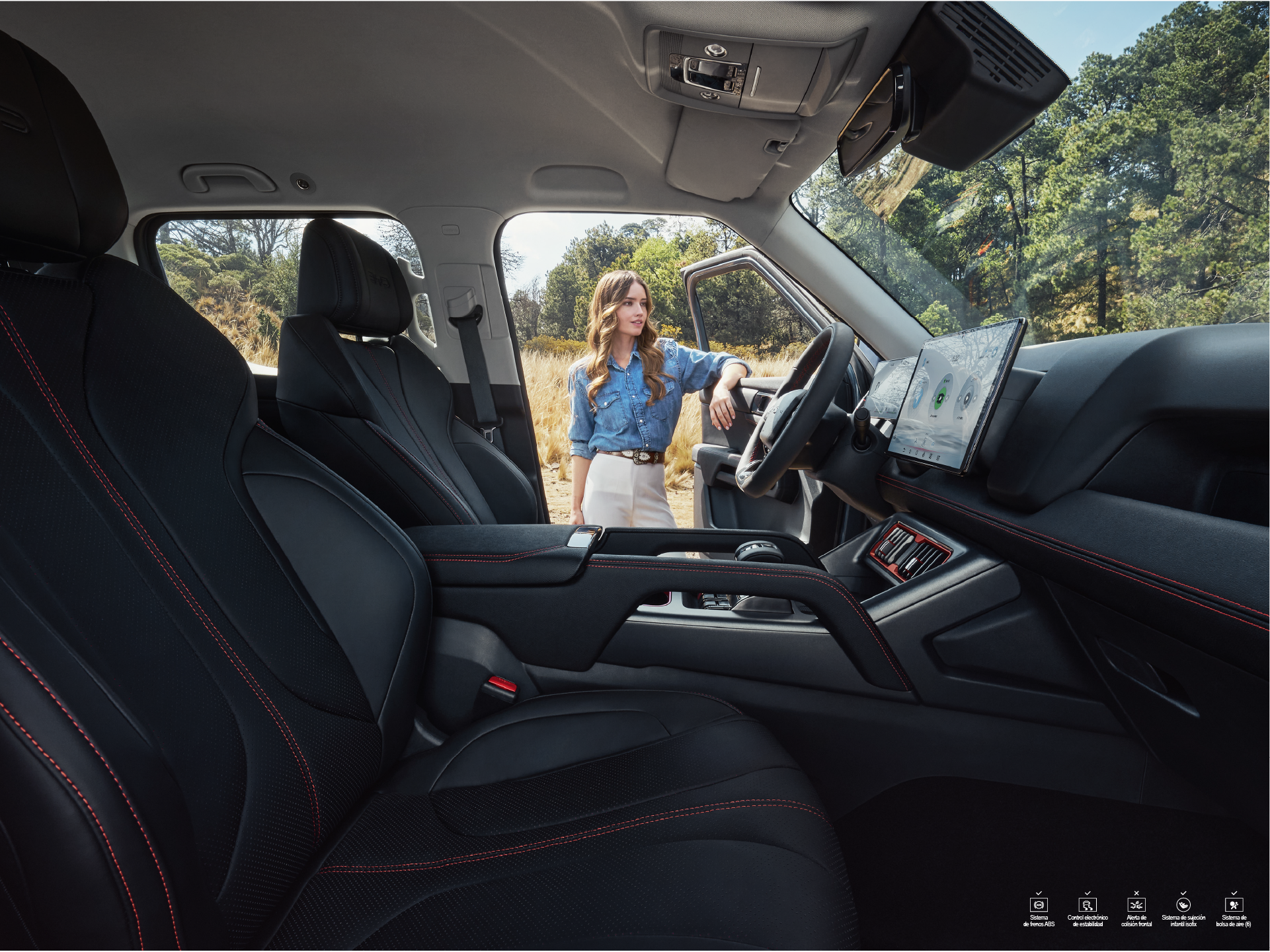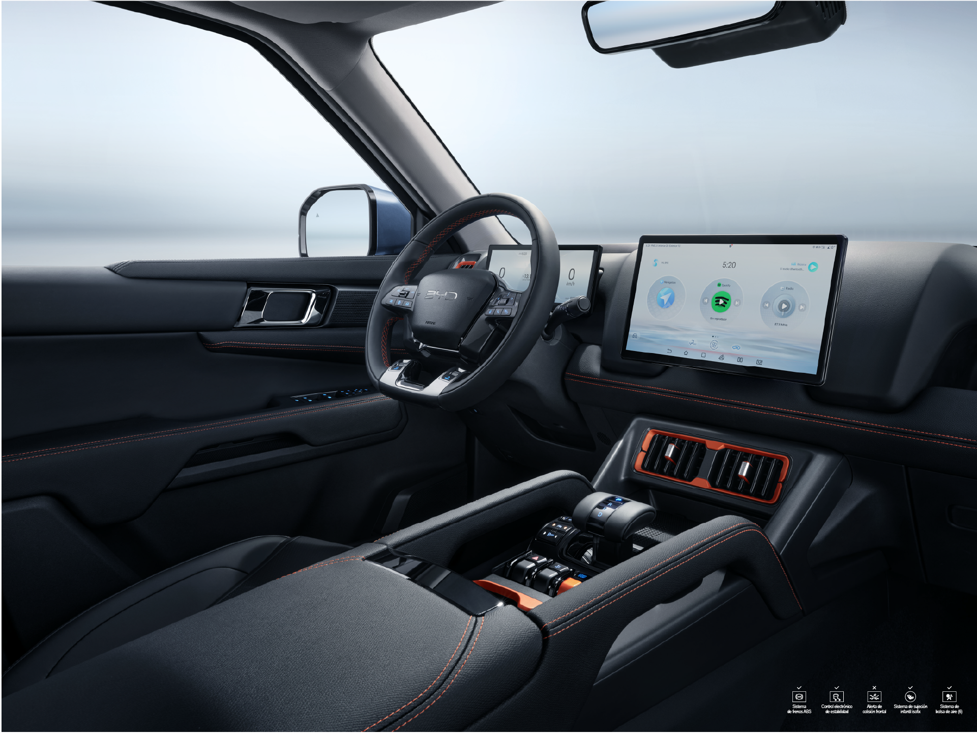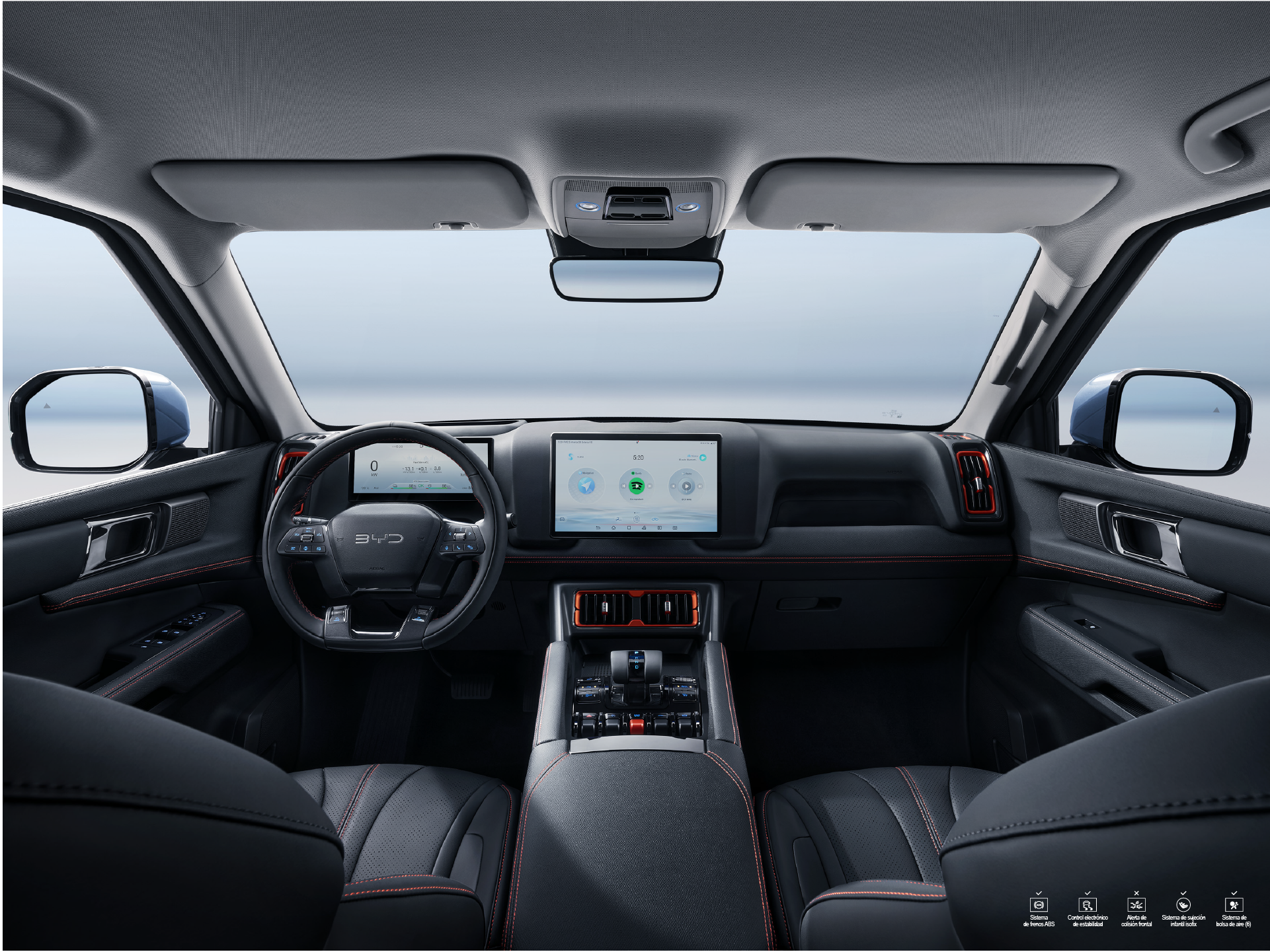 Lujo y practicidad con tapicería premium, sillas delanteras con calefacción, ventilación y ajuste eléctrico, apoyabrazos central, y acabados en cuero. Además, ofrece conectividad avanzada con pantalla táctil giratoria de 12,8”, Apple CarPlay®, Android Auto®, sistema de sonido Dirac con 8 parlantes y cargador inalámbrico de 50W.