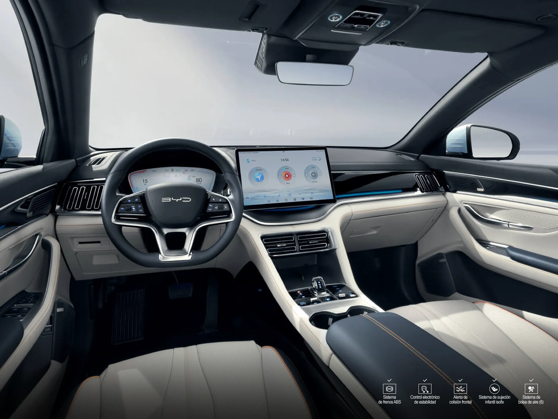 Este vehículo está equipado con avanzadas capacidades inteligentes, como el sistema de reserva de carga y el sistema de cabina inteligente de BYD. Nuevo sistema de acceso por NFC, lo cual facilita la entrada al vehículo y el Head-Up Display (W-HUD) en el parabrisas, el cual mejora la experiencia del conductor al no levantar la vista.