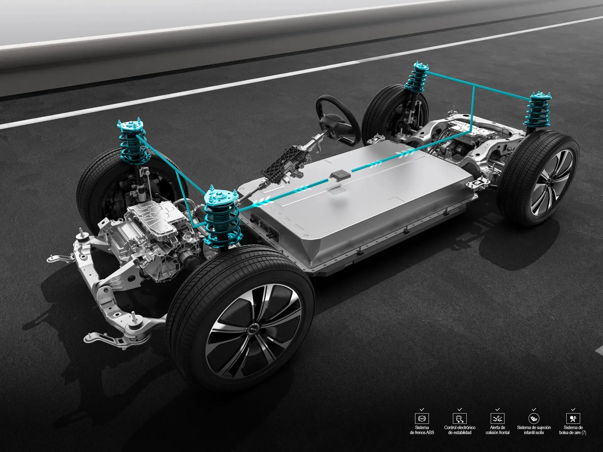 *Ciclo NEDC. El consumo de la batería depende de factores diversos que impactan directamente en el consumo y la autonomía como las condiciones de manejo, condiciones climáticas, topografía, terrenos, velocidad de conducción, peso, estado de los neumáticos.
